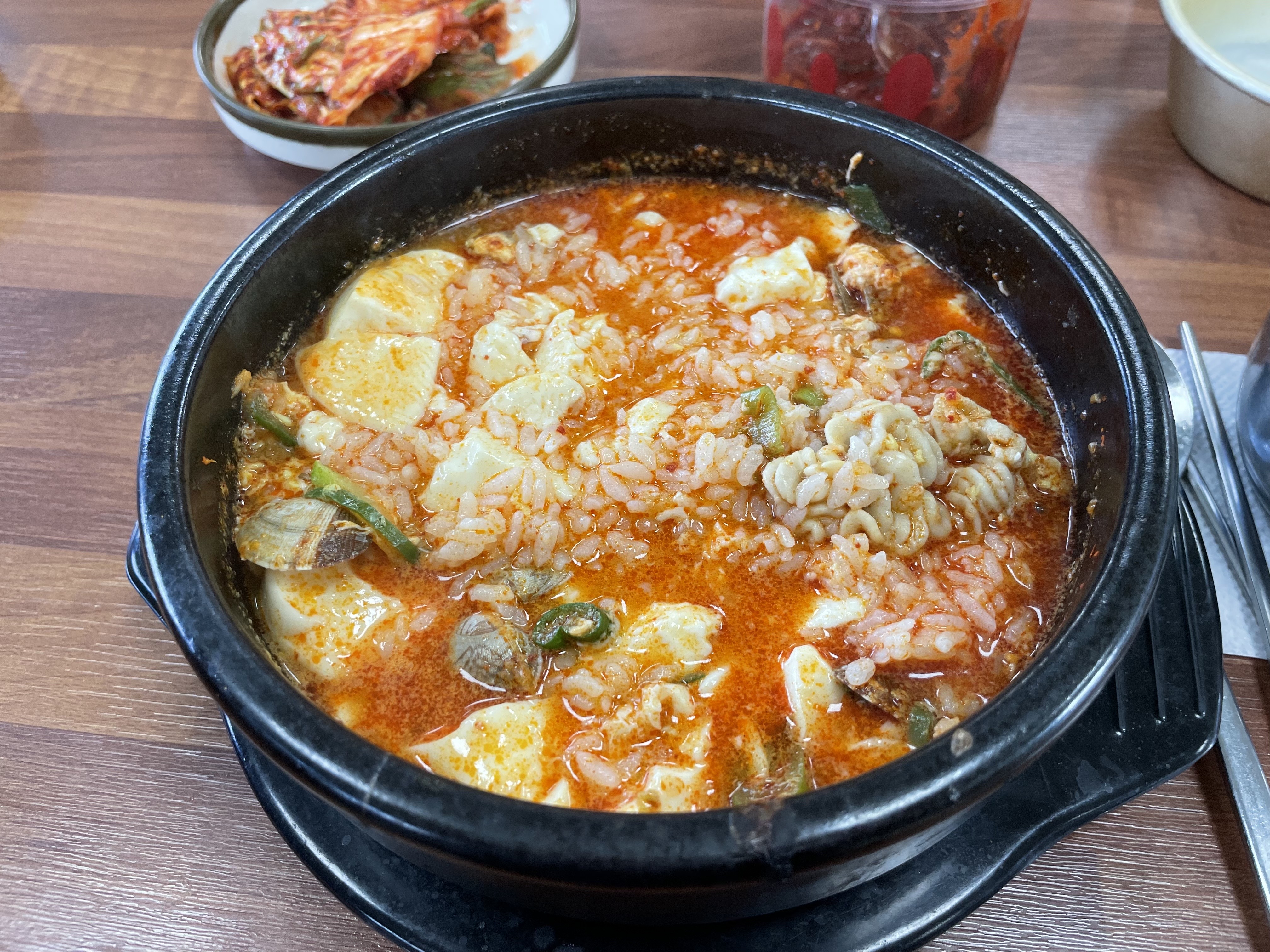 모처럼 얼큰한 순두부를 땀 흘리며 맛있게 먹었다