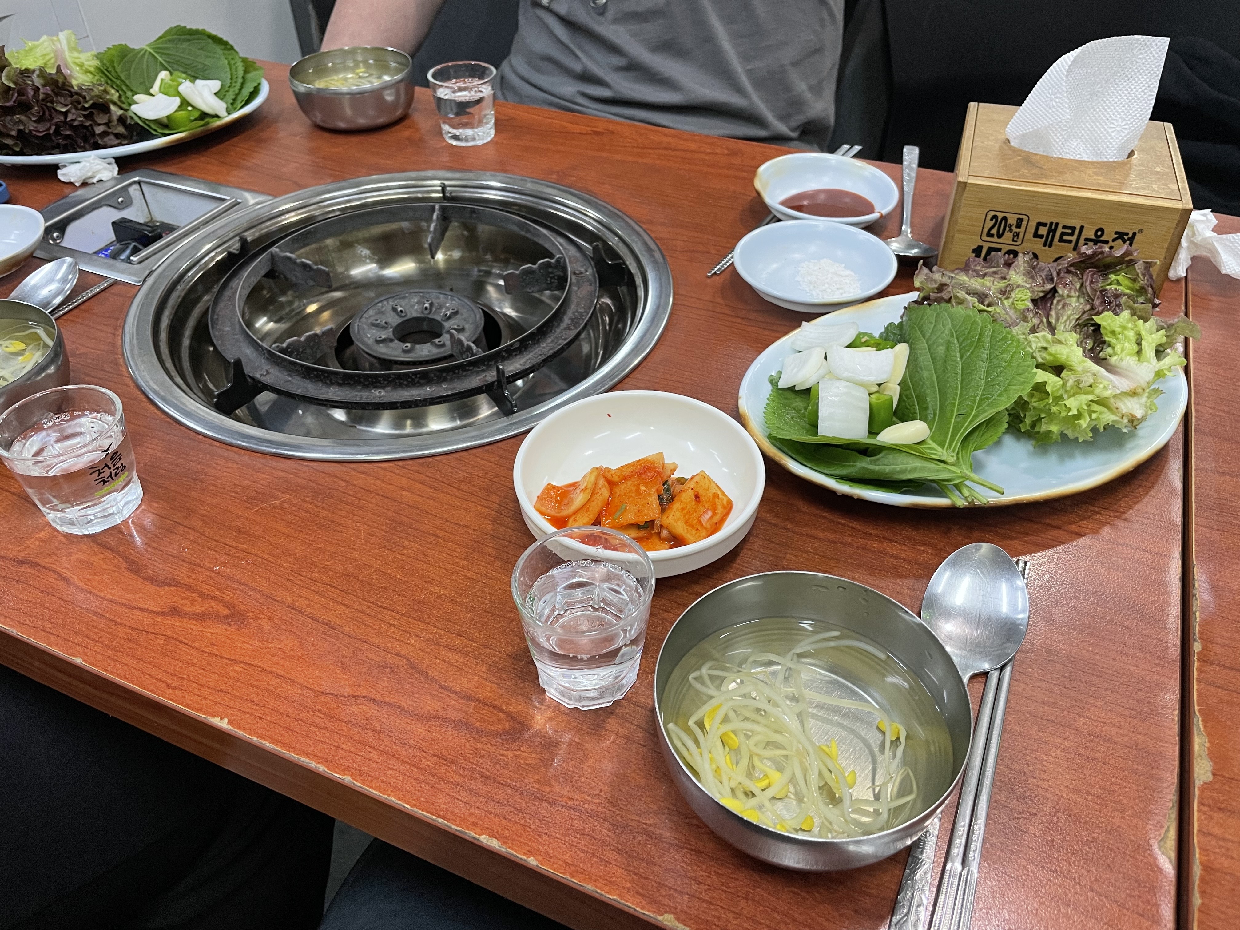 신선한 야채가 나오고 차가운 콩나물국이 나왔다
