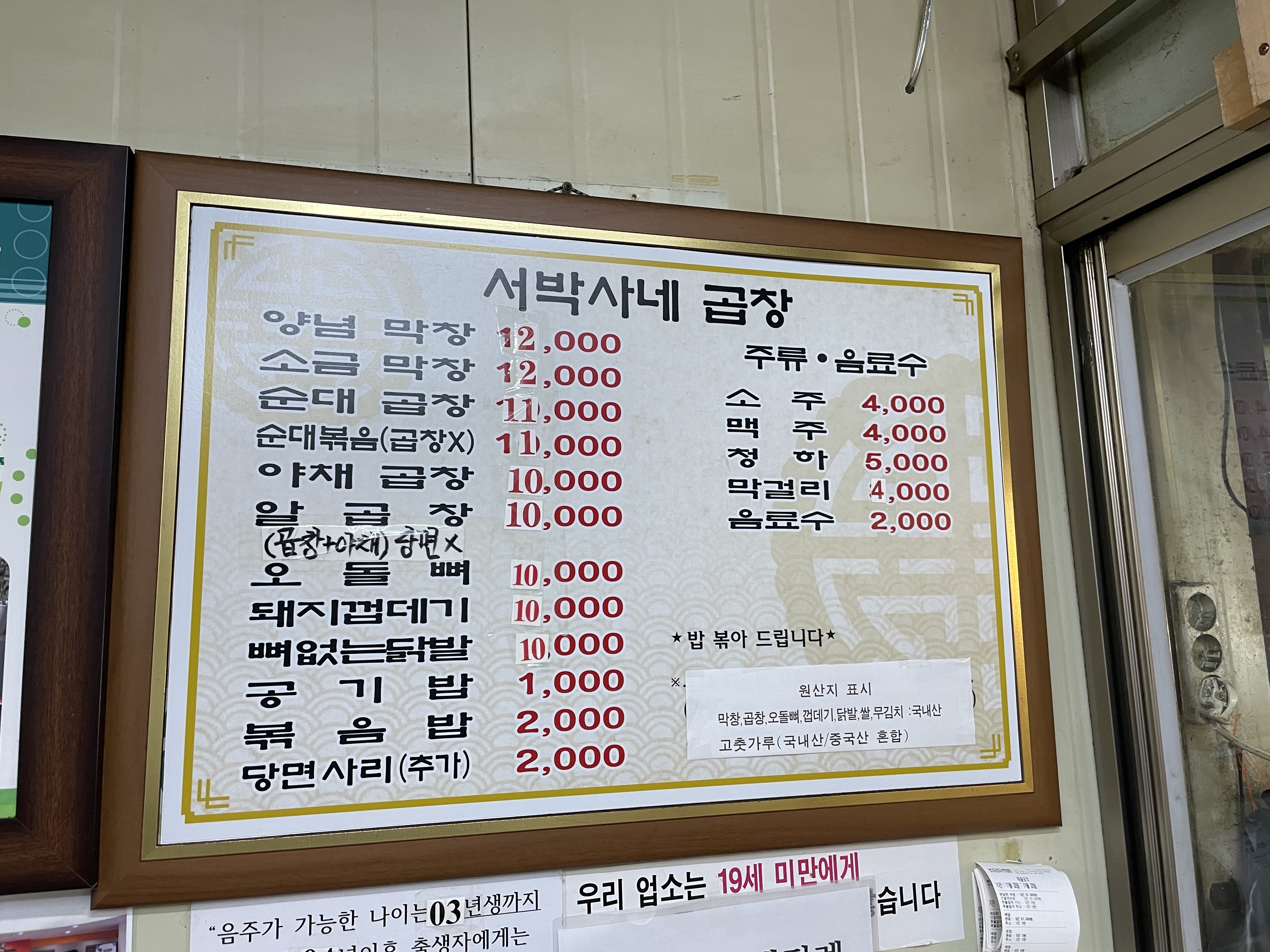 간판엔 원조 서박사네라고 적혀 있지만 서박사네 곱창으로 불리는 집이었다