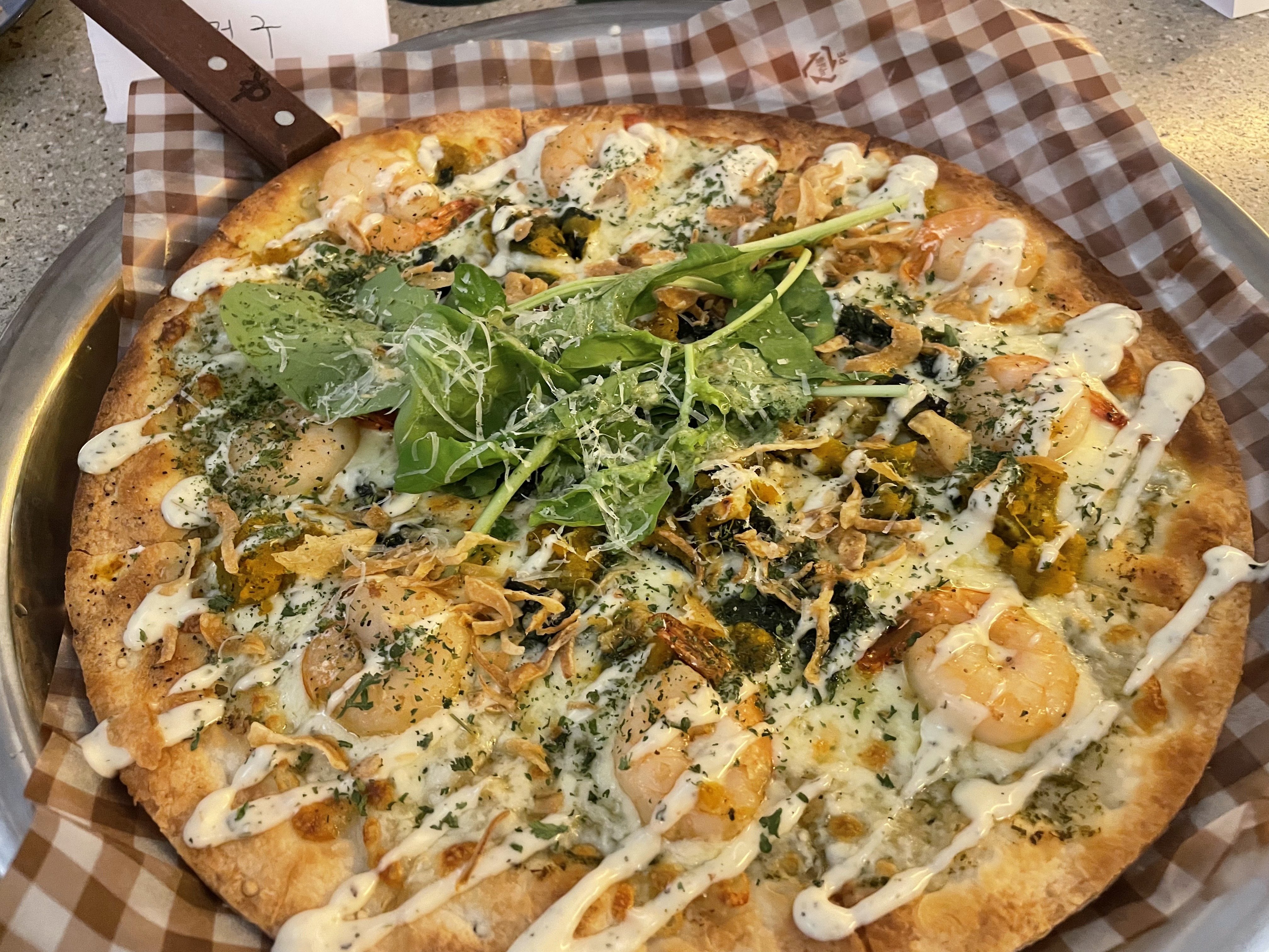 피자가 맛있어서 이번엔 쉬림프 피자를 추가 주문했다