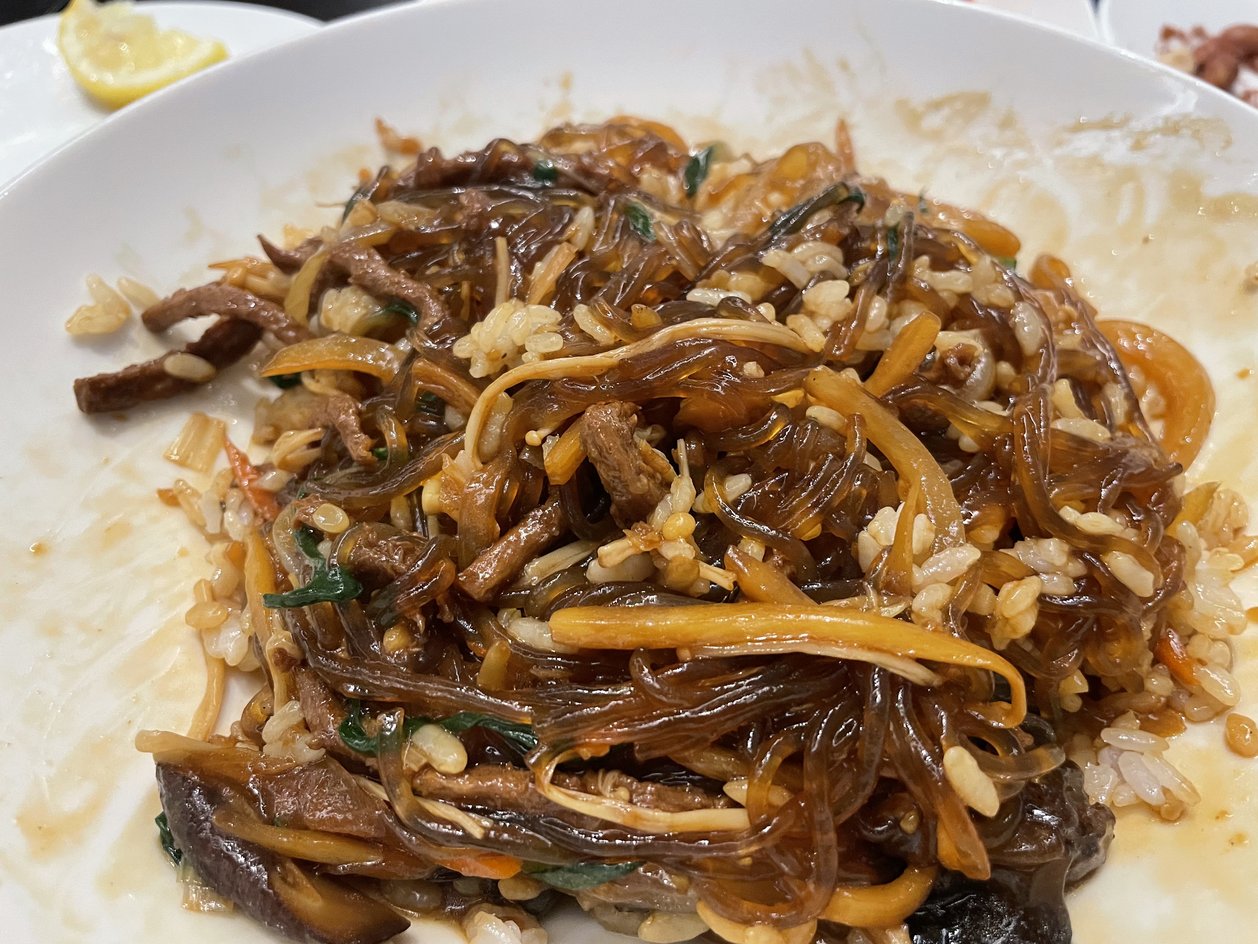돼지고기에 베인 간장 소스도 좋았고 전반적으로 조화로운 잡채밥이었다