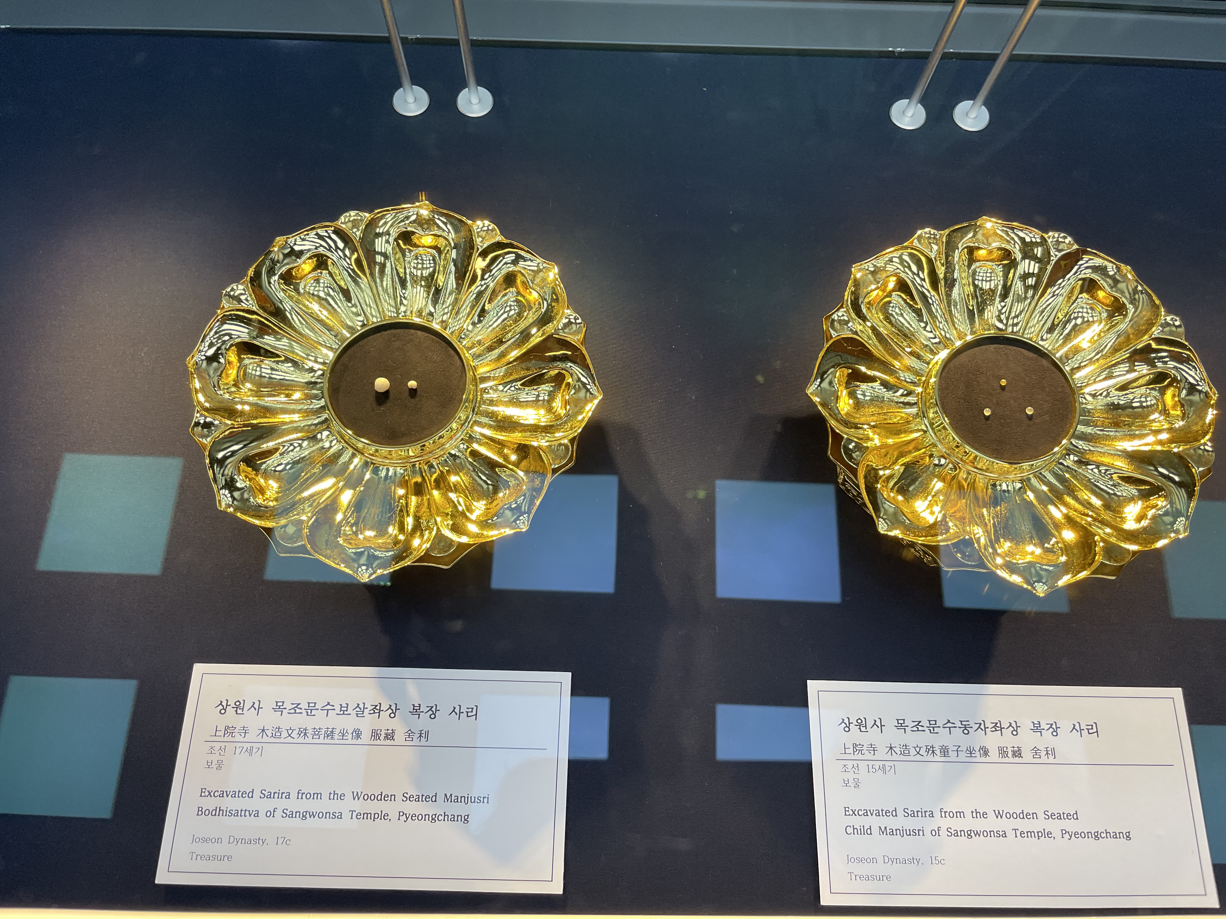 투명한 유리 너머로 사리함 같은게 보인다