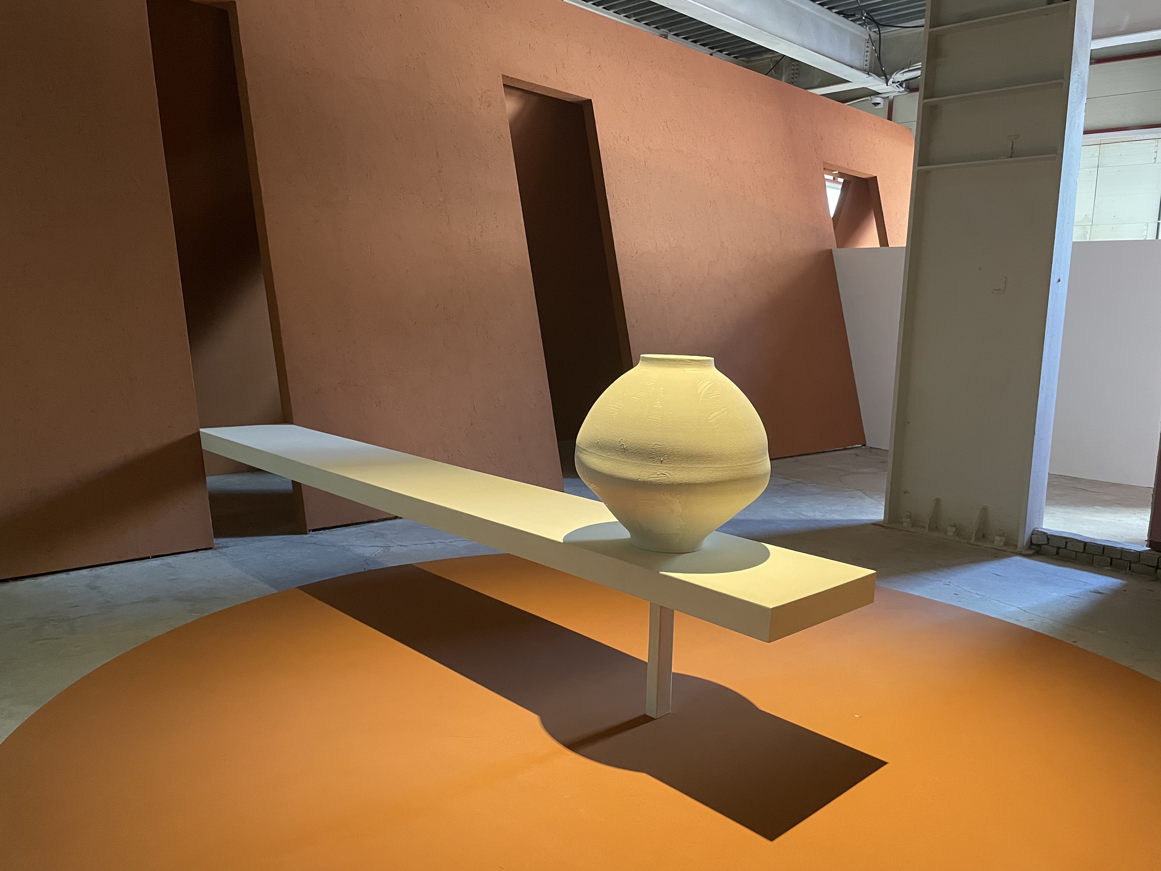 공간 속에 자리 잡은 달항아리는 덜어낼 만큼 덜어낸 비움의 형태로 흙이 지닌 순수한 숨결을 환기시키고자 했다고 한다