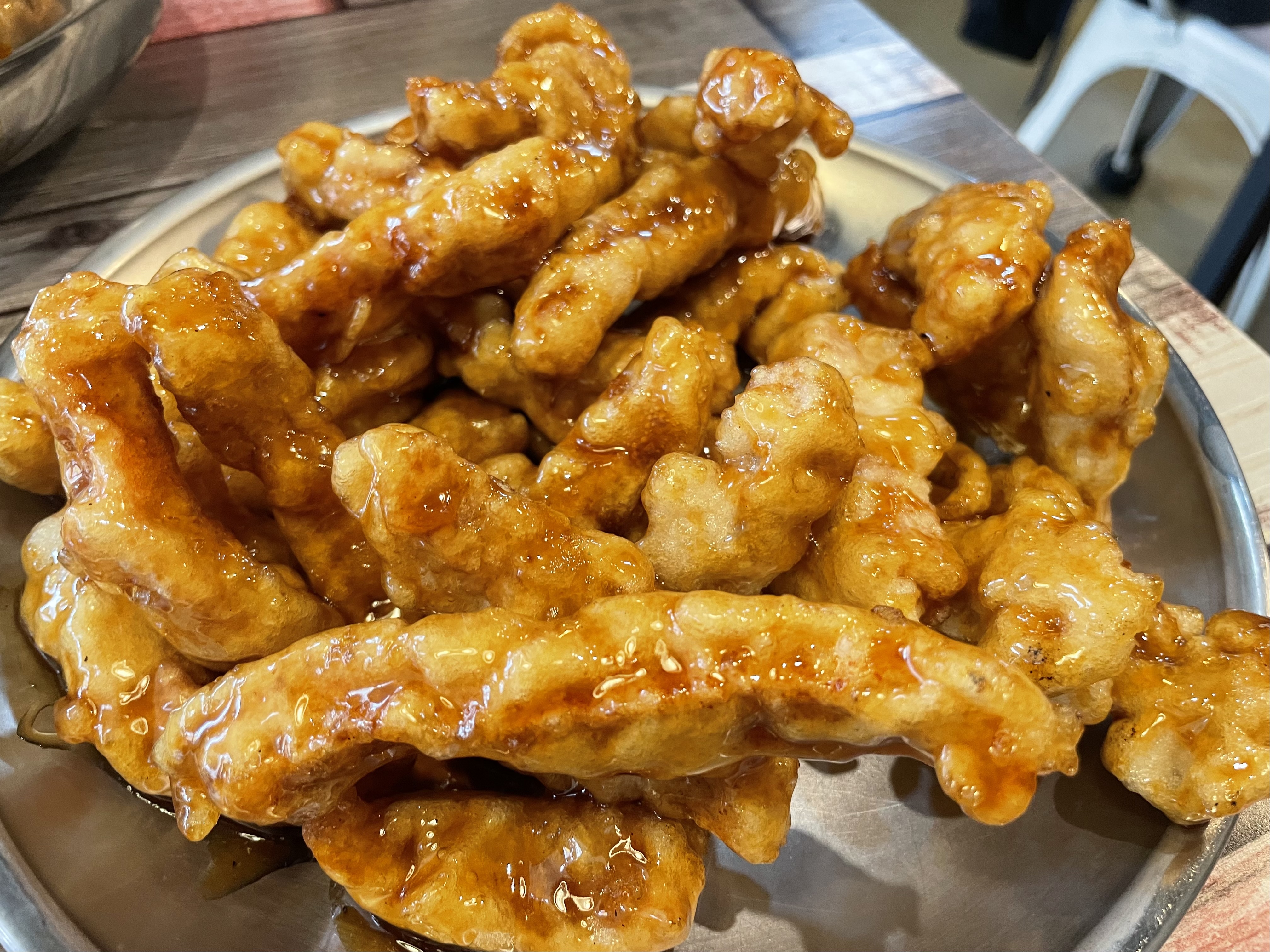 바로 튀겨내었고 달달한 소스에 코팅하듯 볶아 나와서 달콤한 맛이다