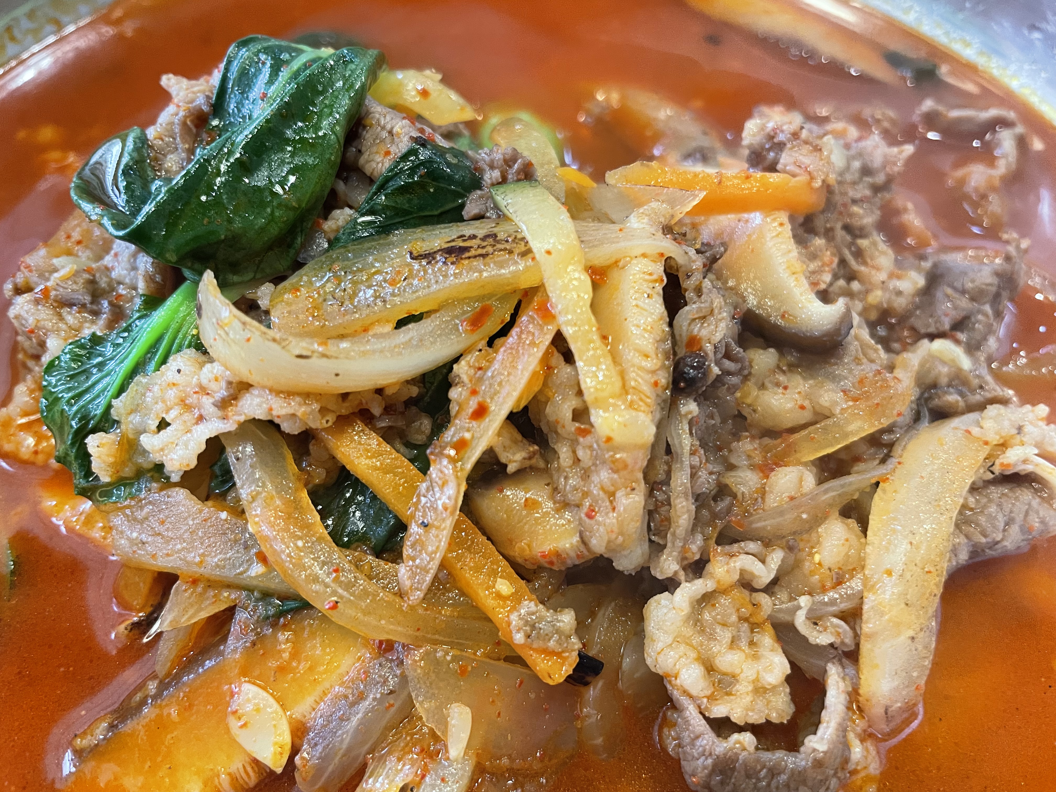 국물을 한입 먹어 보니 고기 베이스로 걸쭉하면서 칼칼함이 매력적이다