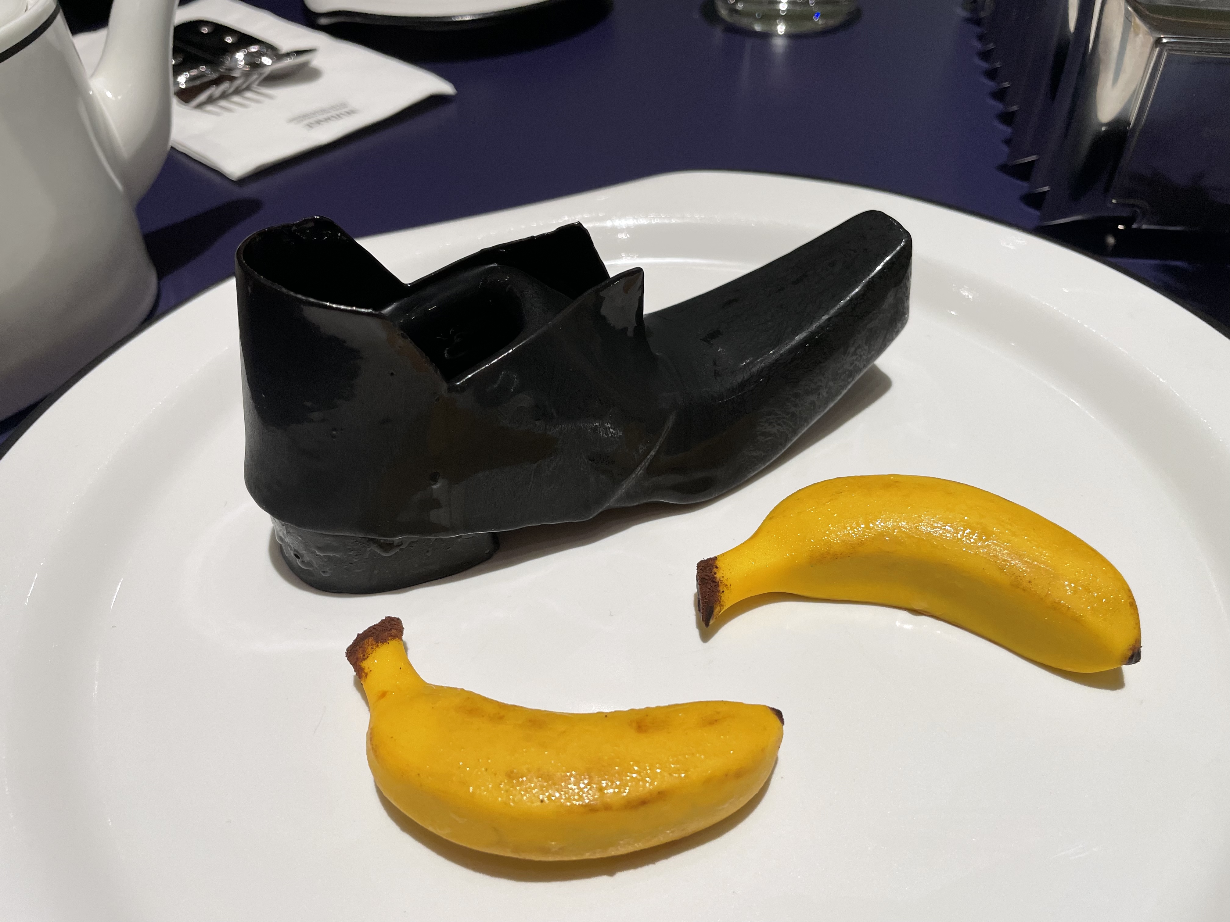 초콜릿으로 감싼 구두의 맛은 진한 다크 초콜릿의 풍미가 좋았고 바나나는 안에 들은 너트류의 식감이 잘 어우러지는 맛이라 좋았다