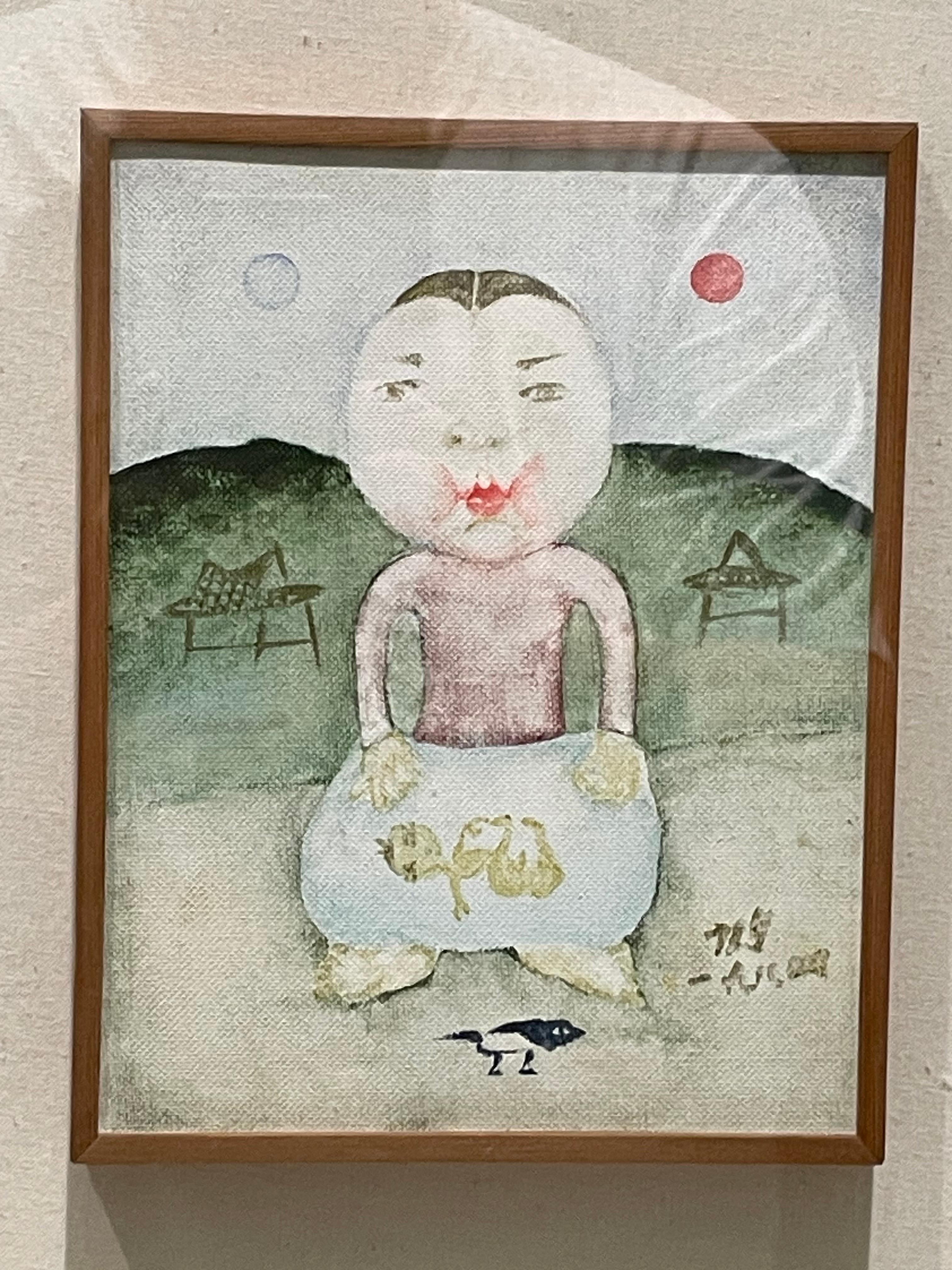 장욱진 작품에는 까치가 종종 등장하는데 까치를 가운데 아래 배치한 모습이 독특했고 남자 어린아이인 줄 알았지만 여성이라고 한다