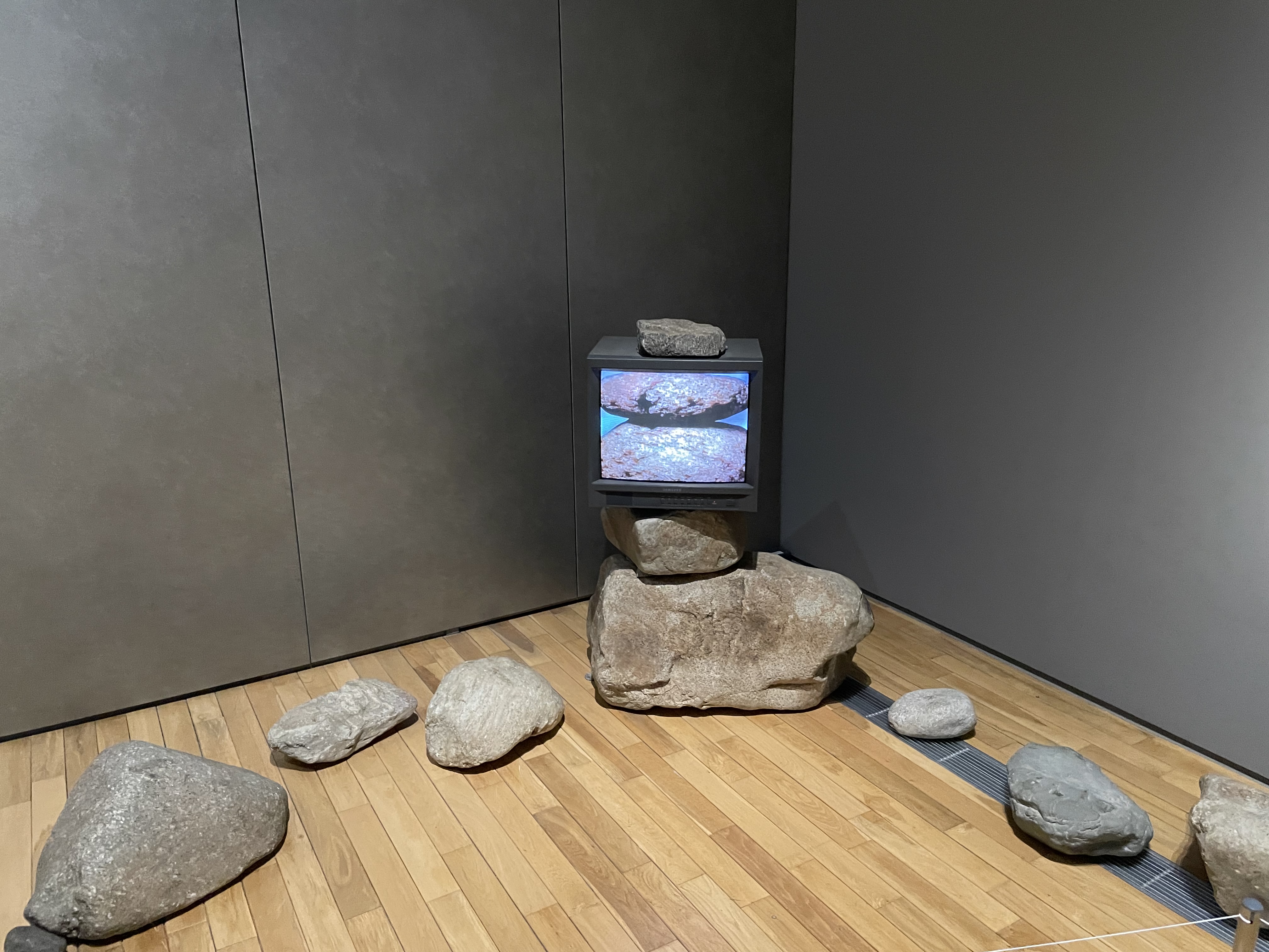 돌 사이에 돌의 영상을 담은 모니터를 쌓아 올린 대표작이라고 한다