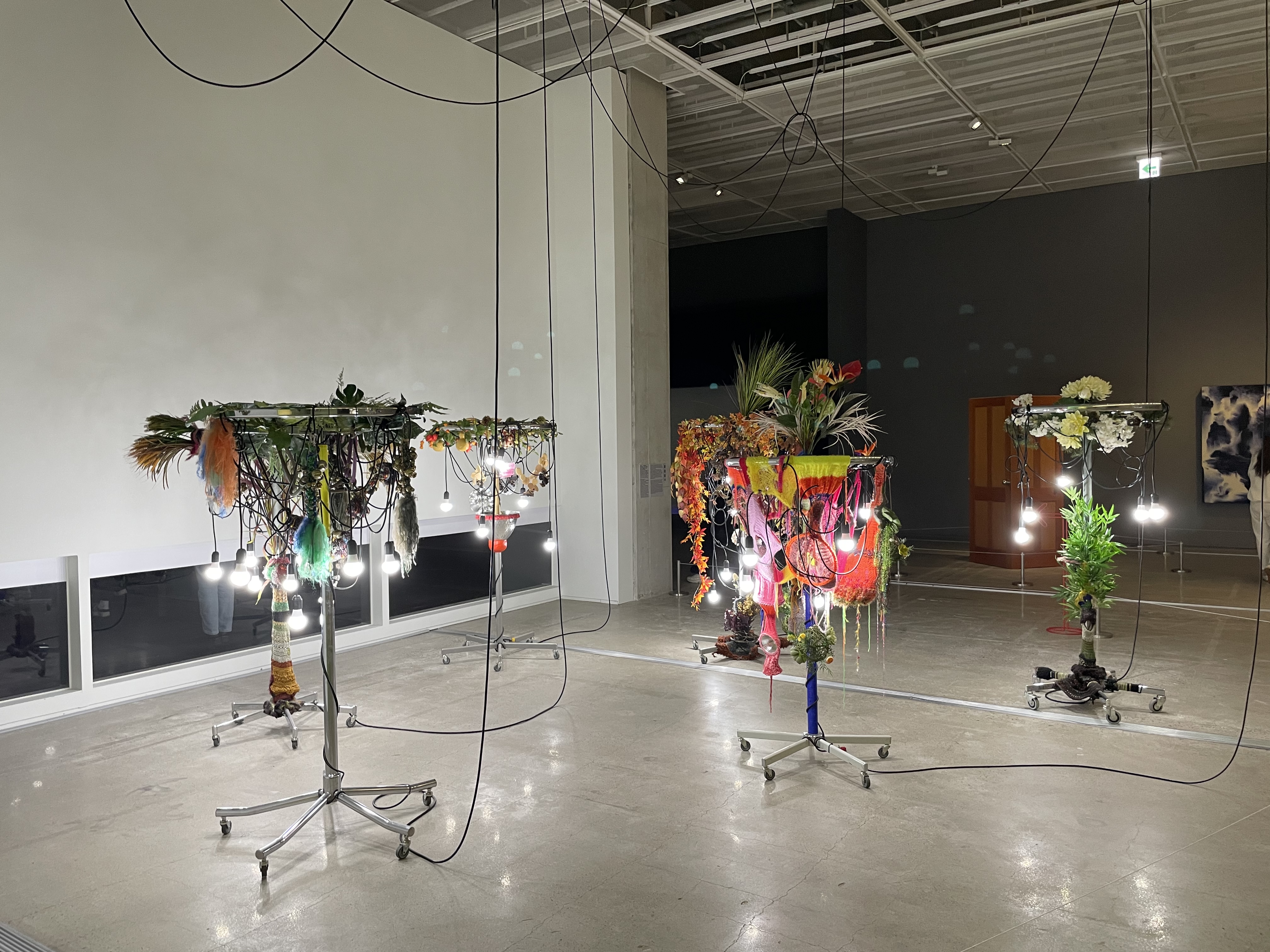 이렇게 서로 연결된 모든 세상의 소리를 보는 존재, 즉 ‘관음’으로서 설치된 반가사유상은 크롬 도금된 표면에 벽면에 설치된 작품들이 투영되면서 결과적으로 ‘있으면서도 없는’ 색즉시공, 공즉시색의 의미를 더하고 있다고 한다