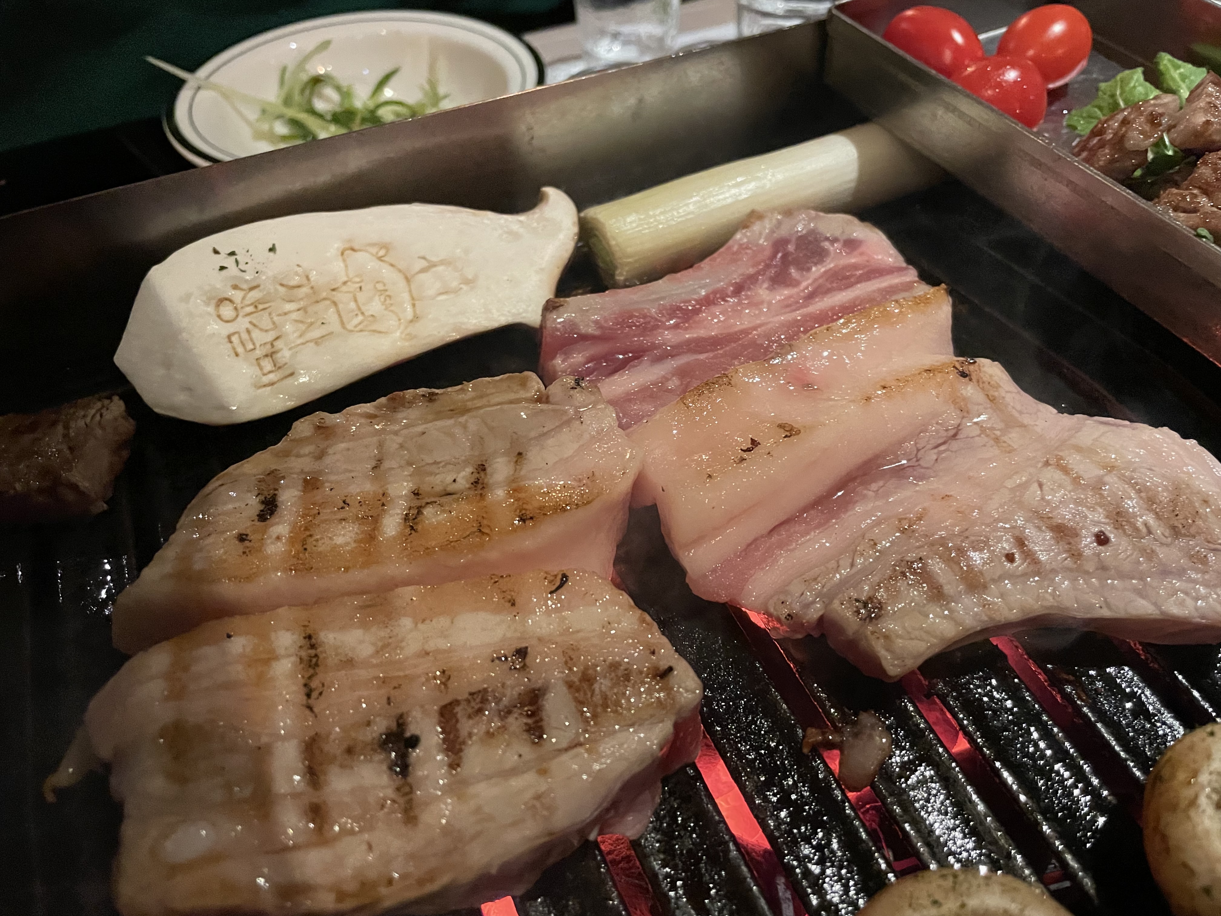 고기가 모자라 생삼겹살을 추가했다
